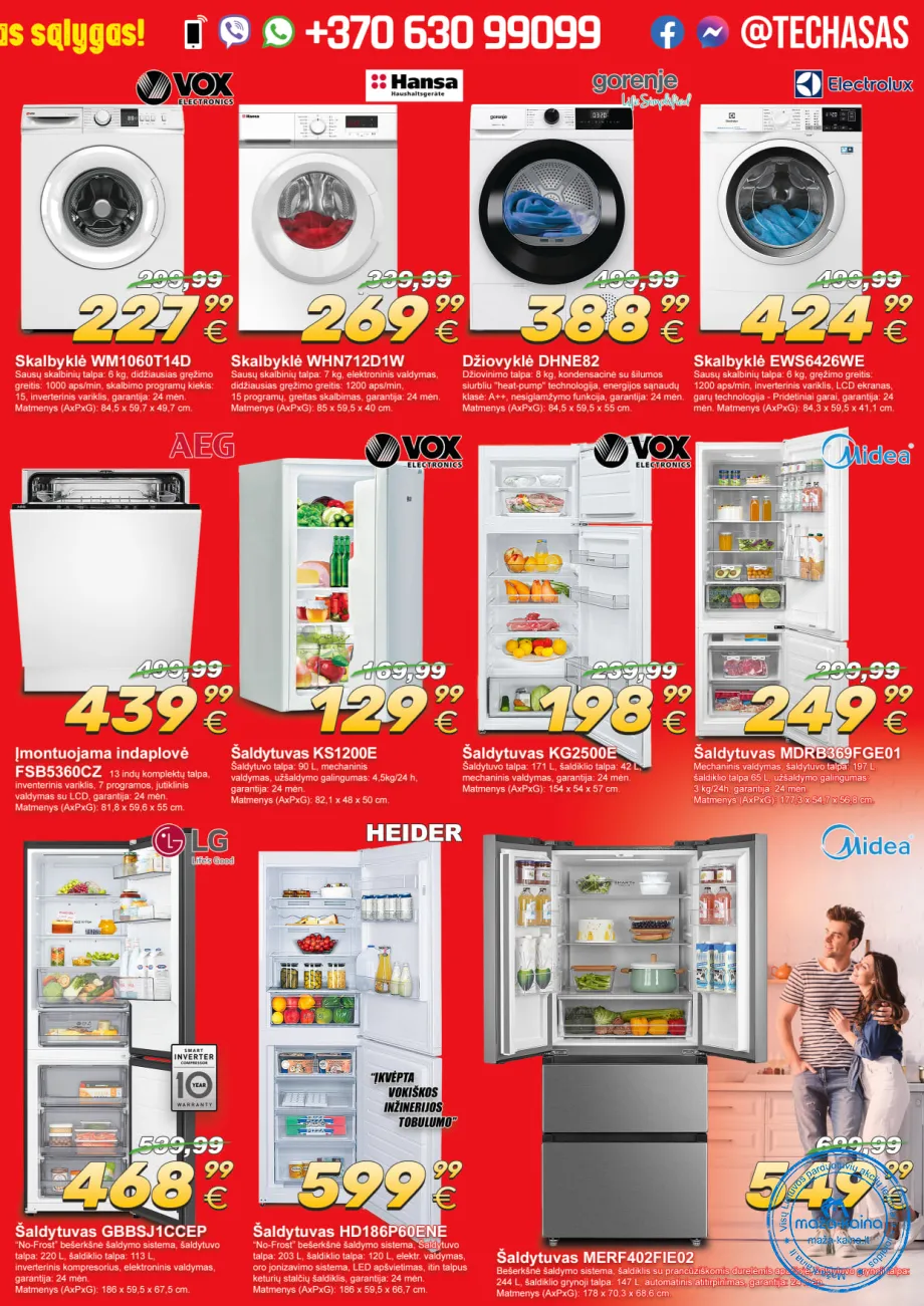 - Platus asortimentas: Nuo smulkios virtuvinės technikos ir grožio priežiūros prietaisų iki stambių šaldytuvų ir skalbyklių – leidinyje apimamos visos svarbiausios kategorijos.