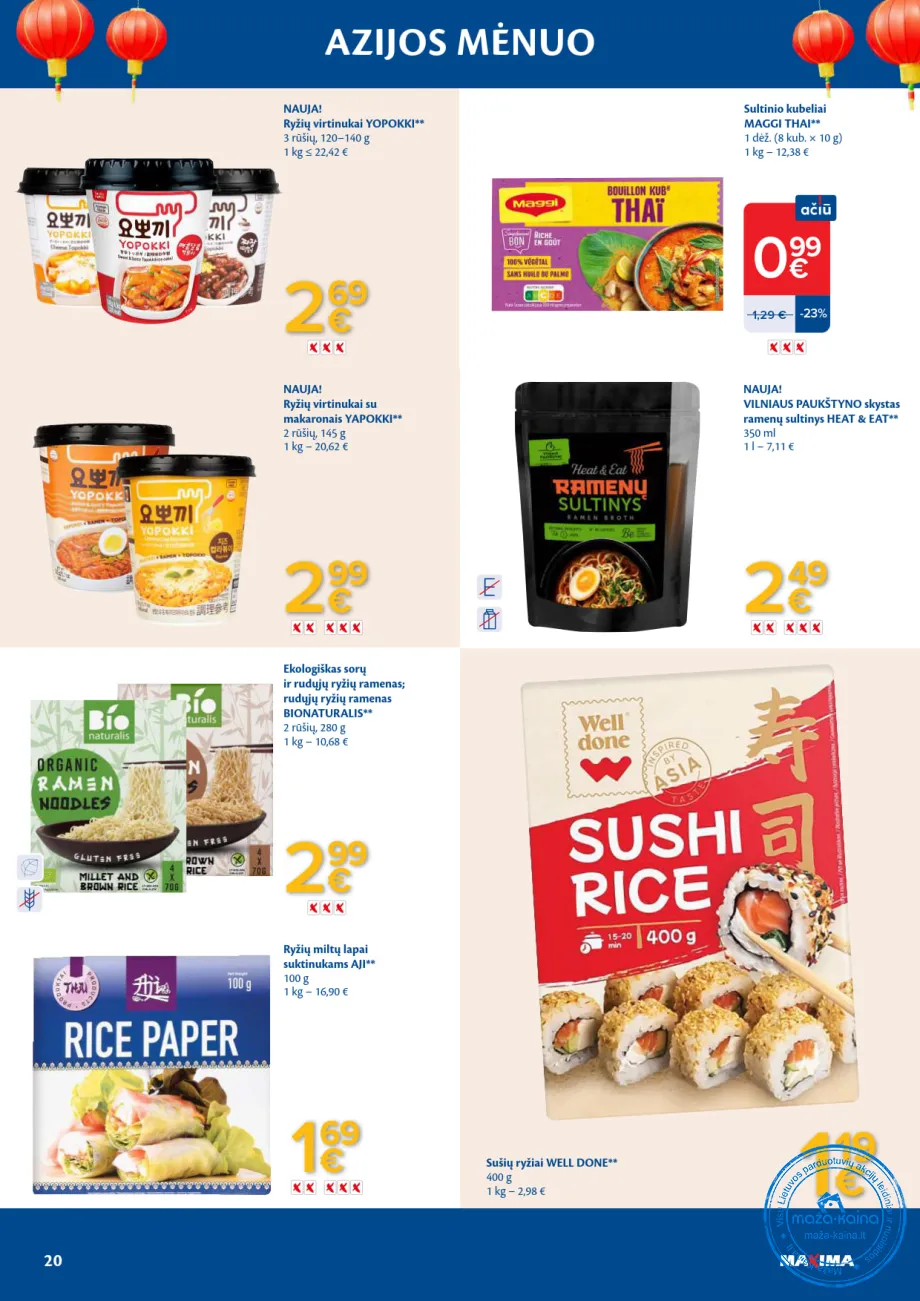 Prekybos tinklas „Maxima“ išsiskiria gebėjimu pasiūlyti garsiausius pasaulinius prekių ženklus bei nišinius Azijos produktus už kasdienę, kiekvienam prieinamą kainą. Teminis „Azijos mėnuo“ leidžia sutaupyti net iki 40–50 % populiariausiems Rytų virtuvės ingredientams. Užuot užsakinėję brangų maistą į namus, perverskite šį skaitmeninį leidinį, susidarykite pirkinių sąrašą ir pasisemkite įkvėpimo naujiems receptams. Išnaudokite „Maxima“ akcijas ir paverskite savo virtuvę geriausiu Azijos restoranu mieste!