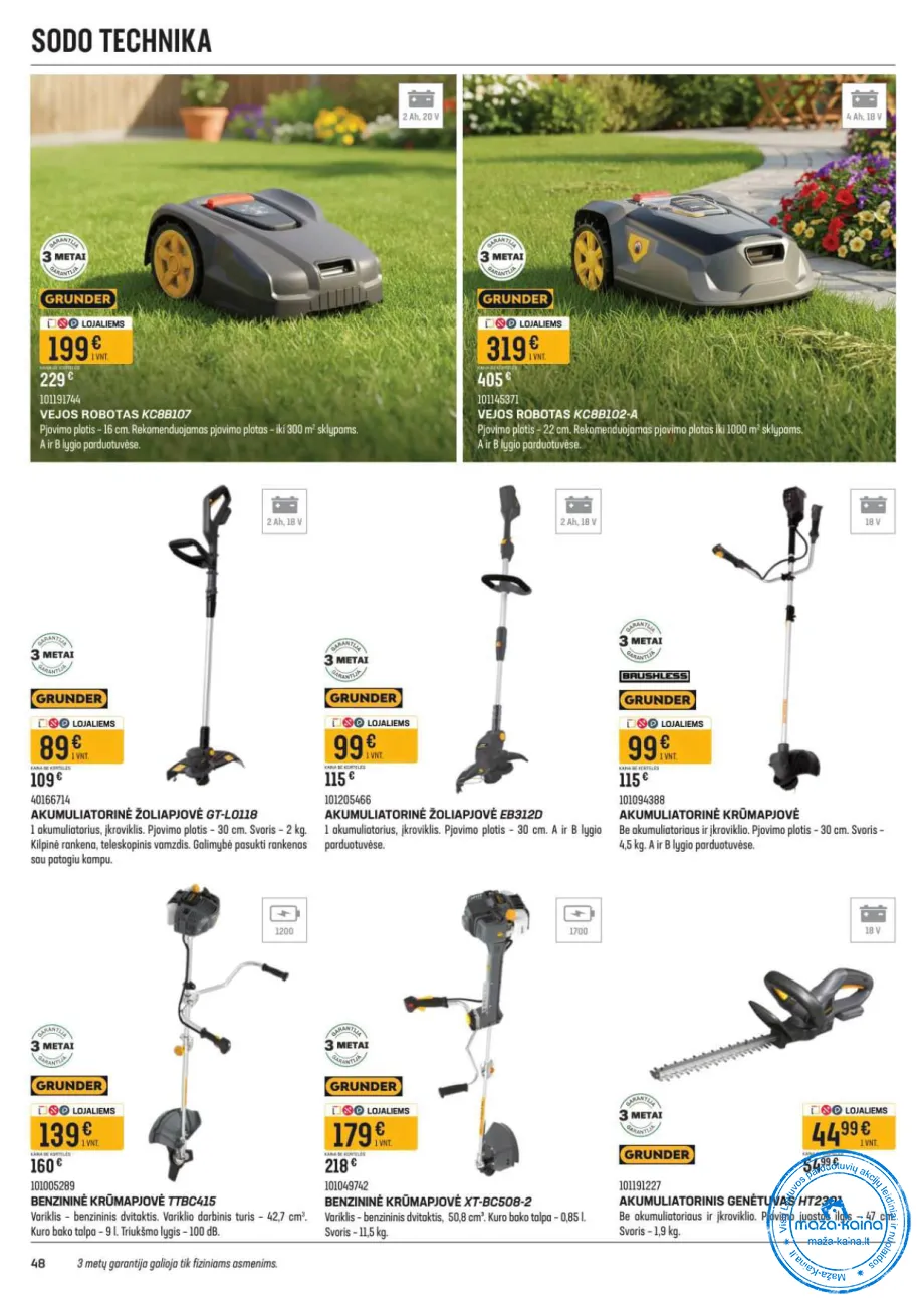 - Sodo ir miško technika: Galingos žoliapjovės, trimeriai, grandininiai pjūklai ir patikimi sodo priežiūros įrankiai, padėsiantys nepriekaištingai sutvarkyti aplinką.