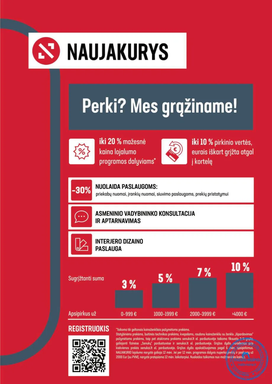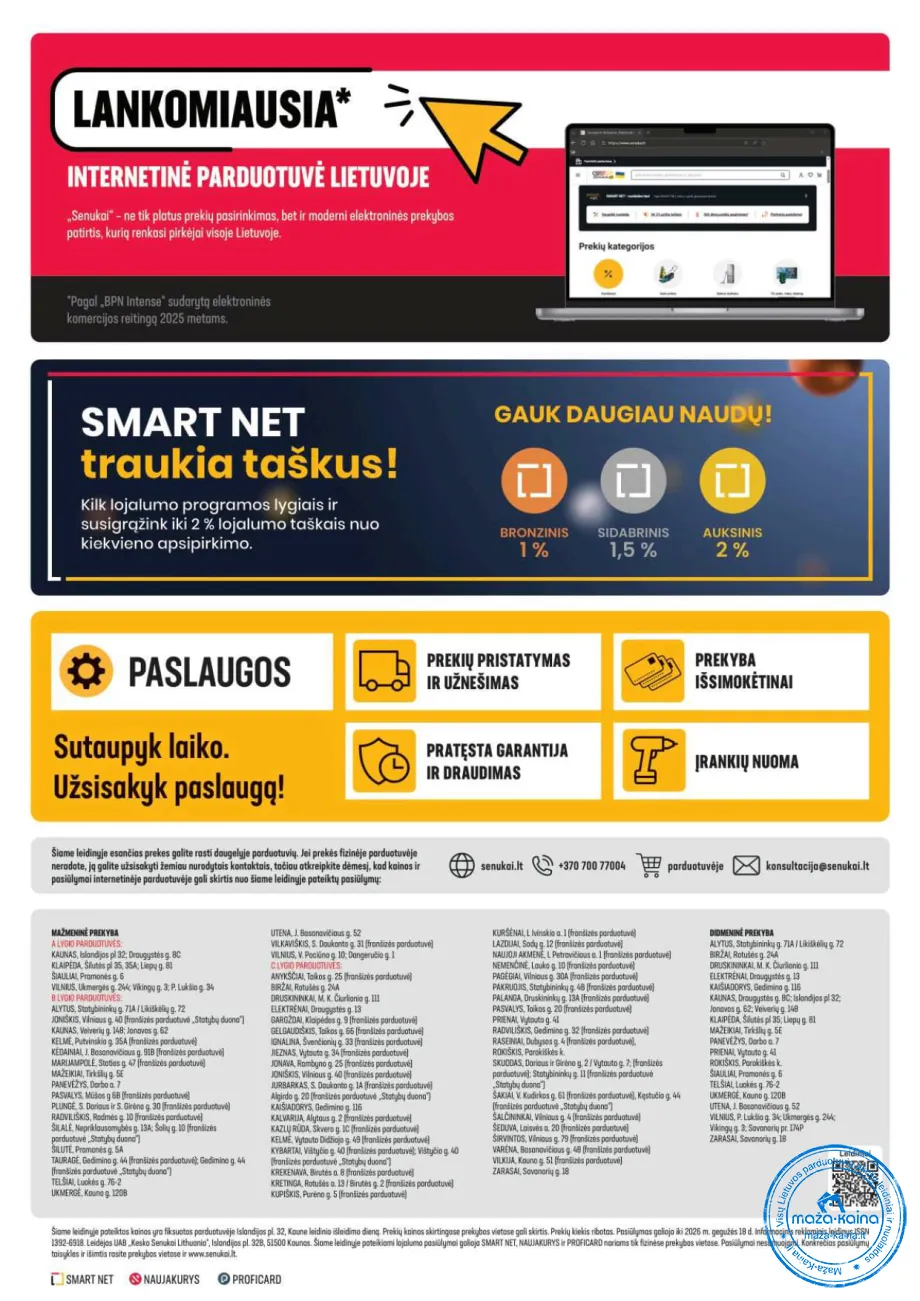 „Senukai“ išsiskiria lanksčia kainodara ir pirkėjams palankiomis sąlygomis. Pasinaudoję lojalumo programa „SMART“, šiame leidinyje pristatomas prekes dažnai galite įsigyti su 30–50 % nuolaida. Skaitmeninio katalogo formatas leidžia iš anksto susipažinti su akcijomis, palyginti skirtingų gamintojų įrenginių specifikacijas ir ramiai susidaryti tikslų pirkinių sąrašą dar esant namuose. Jūs galite patogiai užsisakyti norimas prekes internetu su greitu pristatymu nurodytu adresu arba atsiimti jas fizinėse parduotuvėse.