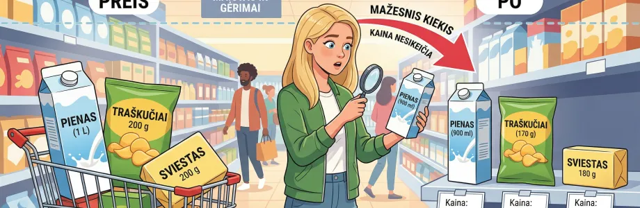 Paslėpta infliacija (Šrinkfliacija): Kaip pastebėti mažėjančias pakuotes ir nepermokėti?